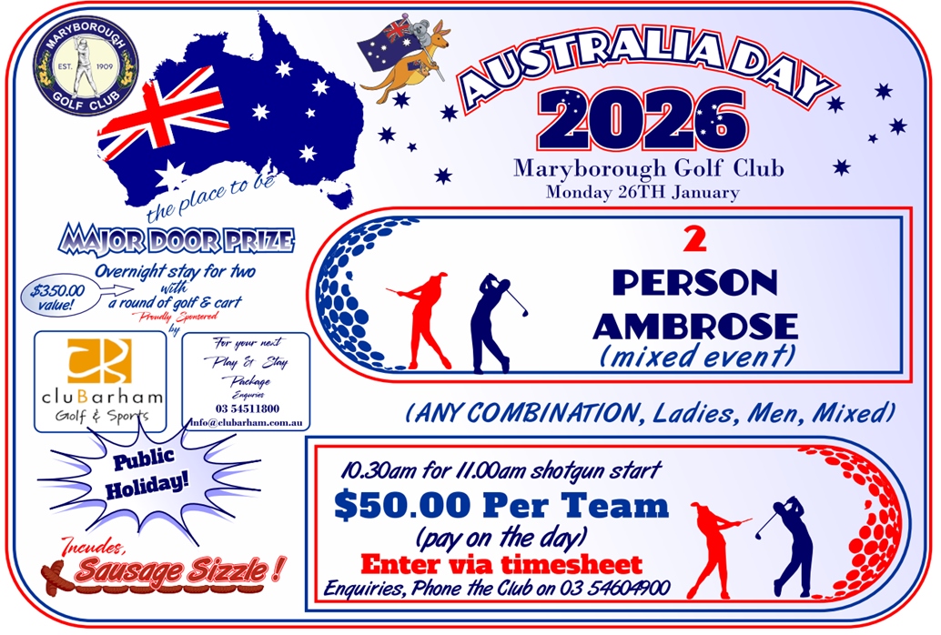 Australia Day Ambrose2025-12-172025-12-17https://maryboroughgolfclub.com.au/wp-content/uploads/2023/08/maryborough-golf-club-logo.pngMaryborough Golf Club Lawn Bowls & Bistrohttps://maryboroughgolfclub.com.au/wp-content/uploads/2025/11/aus-day-ambrose-ls.jpg200px200px