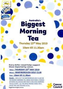 The Maryborough Golf Club supported by Edlyn Food and Truefoods are once again hosting the Biggest Morning Tea.